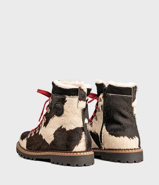 SPLÜGEN är en ankelhög vinterkänga med dragkedja på sidan för enkel av- och påtagning. Beroende på färgutförande är modellen tillverkad i högkvalitativt nappaläder eller mocka, kombinerat med färgmatchade kragar i mocka eller ull. Det mjuka lammullsfodret håller fötterna behagligt varma och skapar ett naturligt och komfortabelt klimat i skon. De röda skosnörena ger ett sportigt uttryck och speglar varumärkets alpina arv. Oavsett om den bärs till jeans eller vinterkappa är SPLÜGEN ett perfekt val för både stadsmiljö och utomhusbruk.