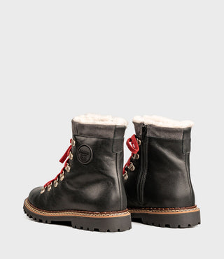 SPLÜGEN är en ankelhög vinterkänga med dragkedja på sidan för enkel av- och påtagning. Beroende på färgutförande är modellen tillverkad i högkvalitativt nappaläder eller mocka, kombinerat med färgmatchade kragar i mocka eller ull. Det mjuka lammullsfodret håller fötterna behagligt varma och skapar ett naturligt och komfortabelt klimat i skon. De röda skosnörena ger ett sportigt uttryck och speglar varumärkets alpina arv. Oavsett om den bärs till jeans eller vinterkappa är SPLÜGEN ett perfekt val för både stadsmiljö och utomhusbruk.