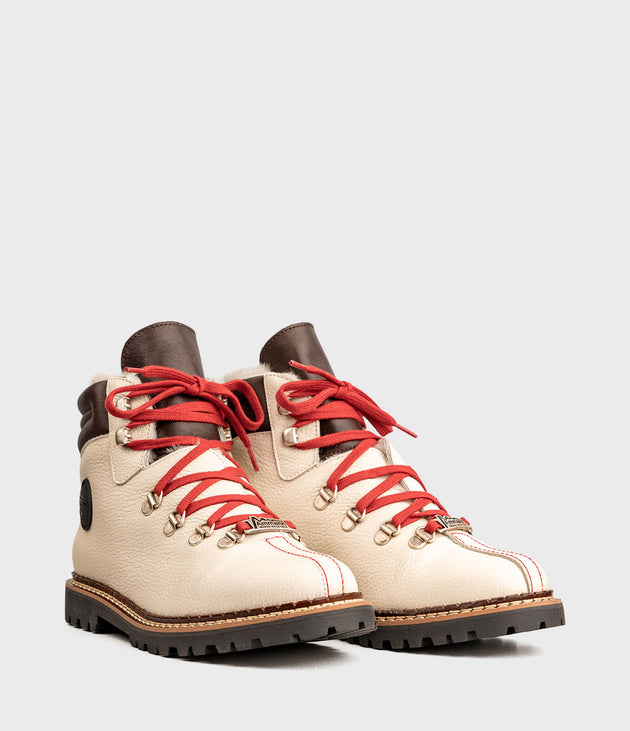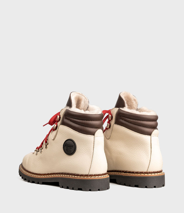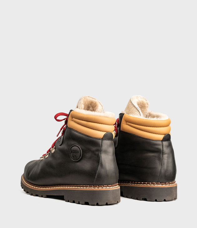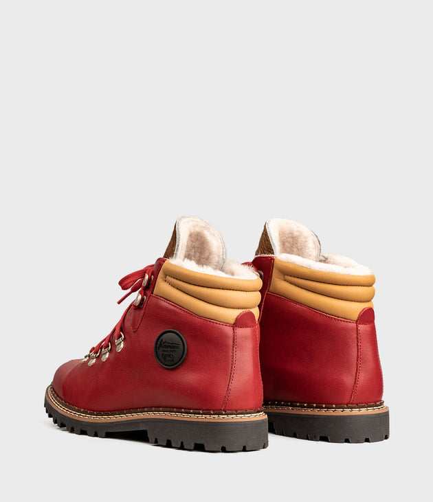 Inspirerad av traditionella vandrings- och bergskängor kombinerar modellen TOWN alpin funktionalitet med urban stil. Ovandelen i läder framhävs av de karaktäristiska röda skosnörena – ett omisskännligt kännetecken för Ammann Shoes. Invändigt ger ett högkvalitativt lammsskinnsfoder behaglig värme, även under kalla vinterdagar. Den greppsäkra yttersulan garanterar stabilt fäste, både i stadsmiljö och på snöiga stigar.