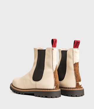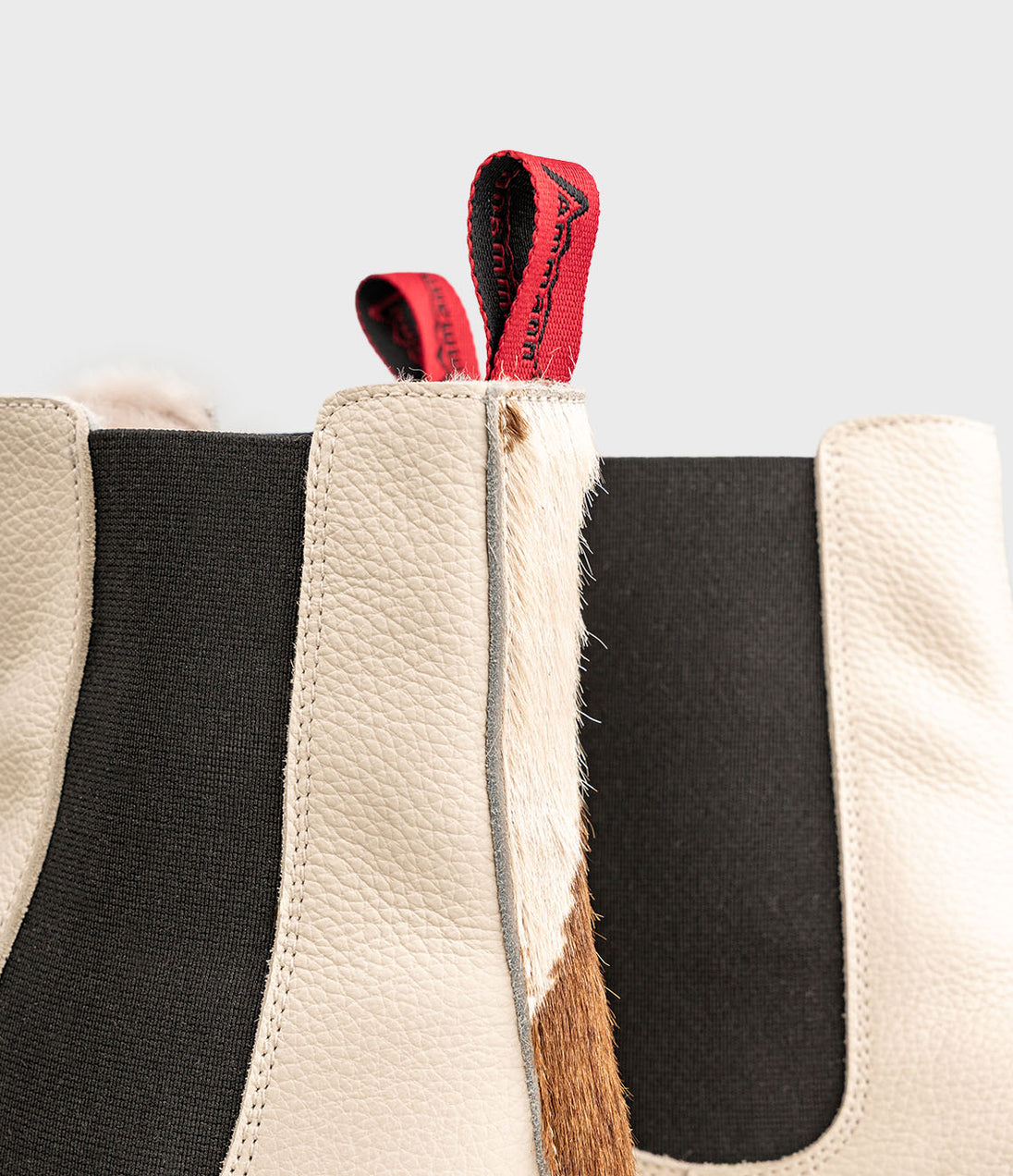 ISELLE is a classic Chelsea boot, reinterpreted for cooler days. Thanks to elastic side panels and a practical pull tab, the shoe is easy to put on. The leather upper and the fully lined lambswool lining guarantee warmth, comfort and style. The profiled sole provides good grip and stability - perfect for city walks during autumn and winter. With its minimalist design and strong character, it suits women who appreciate clean lines and natural materials.